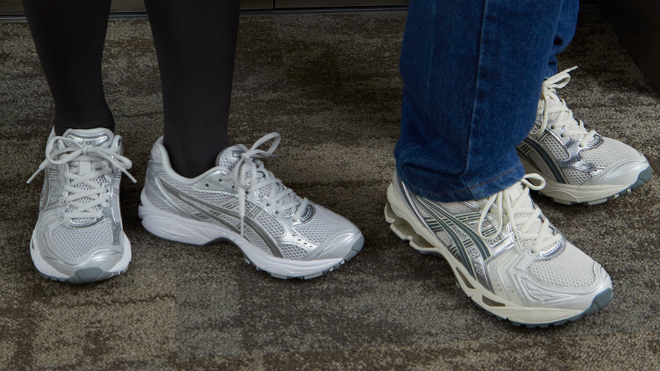 メタリックパーツの質感と繊細なカラーリングでテッキー感を際立たせ、都会の足元に映えるスタイリッシュなルックスに仕上げた1足。